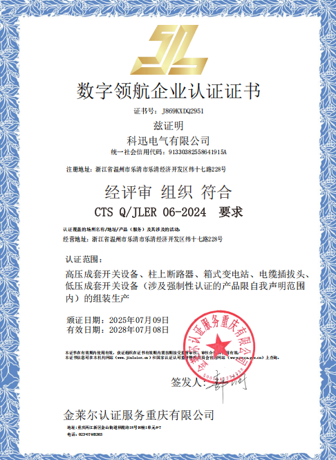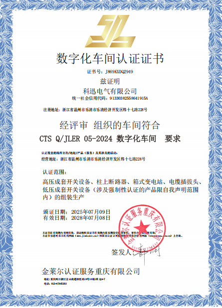 Gunler Certification Service Chongqing Co., Ltd. adalah lembaga sertifikasi pihak ketiga independen yang berspesialisasi dalam bisnis sertifikasi. Ini telah disertifikasi oleh Administrasi Sertifikasi dan Akreditasi Nasional (CNCA), dan telah disertifikasi pabrik untuk banyak perusahaan listrik. Ini adalah lembaga sertifikasi pihak ketiga yang terkenal dan otoritatif di Cina. Kexun menghubungi Perusahaan Gunler pada paruh pertama tahun 2025. Karena bisnis yang sibuk, Gunler Company dijadwalkan untuk datang ke KEXUN untuk ditinjau pada hari khusus 1 Juli. Setelah audit pabrik satu minggu, auditor Gunler memberikan KEXUN FIVE CERTIFIKASI, termasuk Workshop Digital, Factory Factory, Digital Pilot Enterprise, Intelligent Factory dan Intelligent Factoring Intelligent. Lingkup sertifikasi mencakup switchgear tegangan tinggi, pemutus pasca sirkuit, gardu tipe kotak, colokan kabel dan switchgear tegangan rendah.